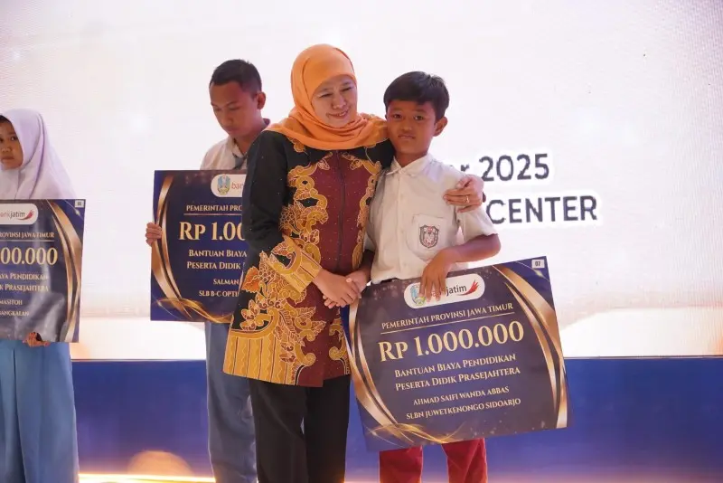Cakrawalanews.co ‘Gubernur Jawa Timur, Khofifah Indar Parawansa, secara resmi meluncurkan Program Bantuan Biaya Pendidikan Peserta Didik untuk Warga Kurang Mampu Tahun 2025 di Gedung Dyandra Convention Center, Surabaya, Rabu (10/12/2025). Program ini merupakan komitmen Pemerintah Provinsi Jatim untuk memastikan tidak ada anak yang putus sekolah karena kendala ekonomi.