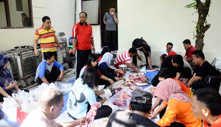 Sementara itu daging hewan kurban dibagikan ke seluruh staf DPRD Kota Surabaya dan petugas pengamanan internal.