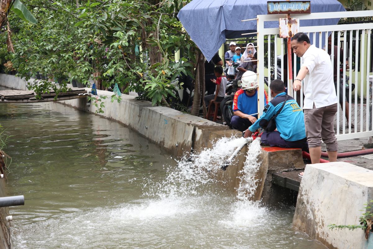Dalam tinjauannya itu, Wali Kota Eri juga memberikan pengarahan langsung kepada para petugas di lapangan. Bahkan, ia meminta Dinas Pemadam Kebakaran dan Penyelamatan (DPKP) dan Dinas Lingkungan Hidup (DLH) menerjunkan beberapa unit mobil untuk menyedot genangan.