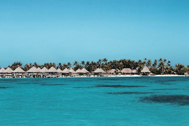 Pulau Bora Bora dengan laguna biru tosca yang jernih dan dikelilingi pegunungan hijau menjulang tinggi, benar-benar menggambarkan keindahan pulau Moana. Kamu bisa menikmati berbagai aktivitas air seperti snorkeling, diving, atau sekadar bersantai di pantai pasir putih sambil menikmati pemandangan gunung Otemanu yang ikonik.