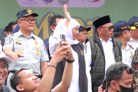 Pelepasan peserta program mudik gratis dilakukan oleh Gubernur Jawa Timur, Khofifah Indar Parawansa, dan dihadiri anggota Komisi D Nurul huda.
