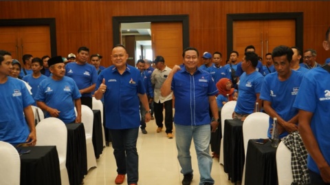 Kehadirannya disambut dengan semangat yel-yel khas kader Demokrat yang menggema di ruangan.