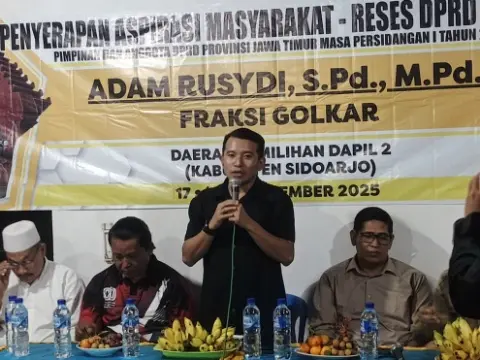 Surabaya. Cakrawalanews.co – Ketua Komisi C DPRD Jawa Timur, Adam Rusydi, menggelar kegiatan reses di Desa Kloposepuluh, Kecamatan Sukodono, Kabupaten Sidoarjo. Reses yang berlangsung hangat dan penuh dialog tersebut dihadiri lurah, perangkat desa, tokoh masyarakat, dan warga setempat.